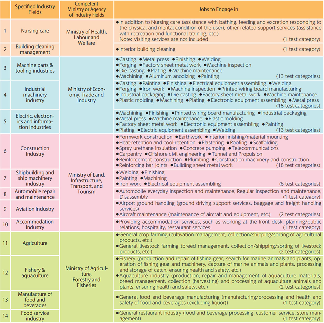 Specified Industry Fields and Jobs